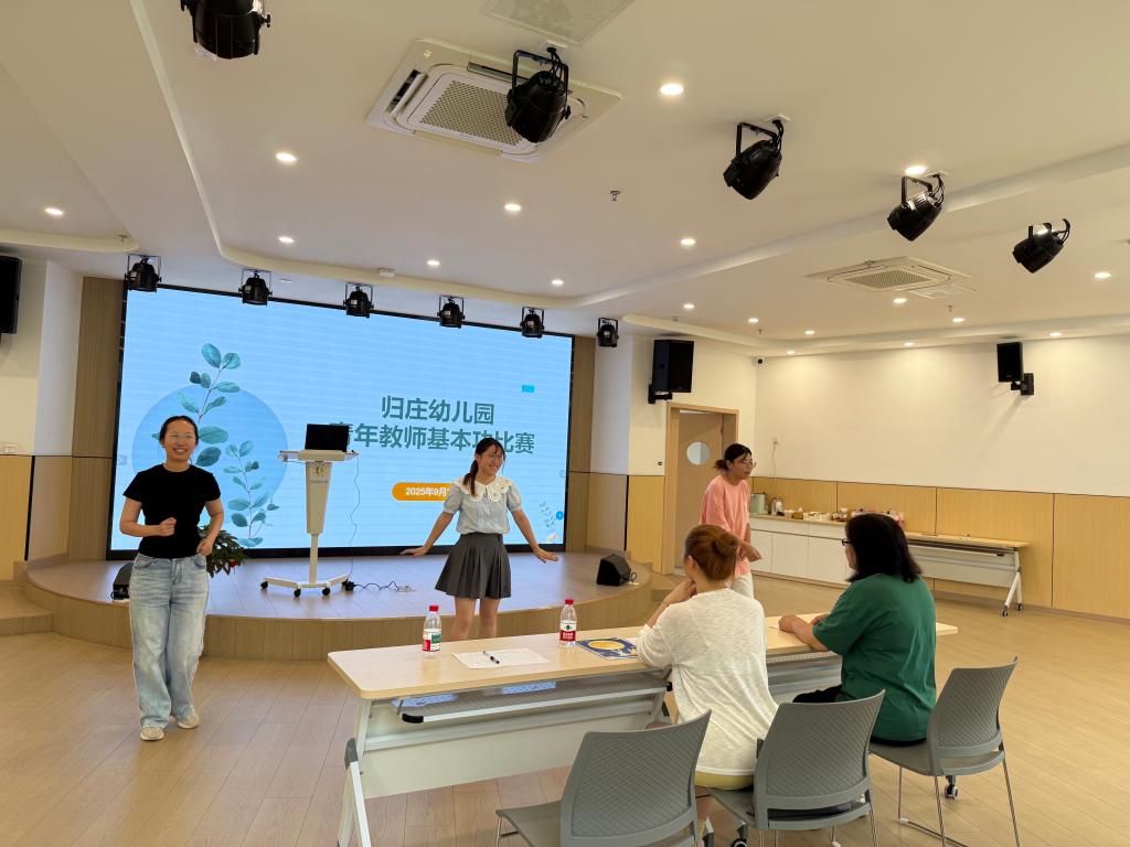 为进一步提高青年教师专业素养,夯实教育教学基本功,激发教师专业成长内驱力,2025 年 9 月 23 日上午,太仓市沙溪镇白云幼教中心归庄幼儿园举行2025年青年教师基本功大赛。本次大赛汇聚全园6位青年教师同台竞技,由园内资深教师张老师、杨老师、徐老师组成专业评委团,围绕多维度能力开展综合考评,为保教质量提升注入鲜活动力。