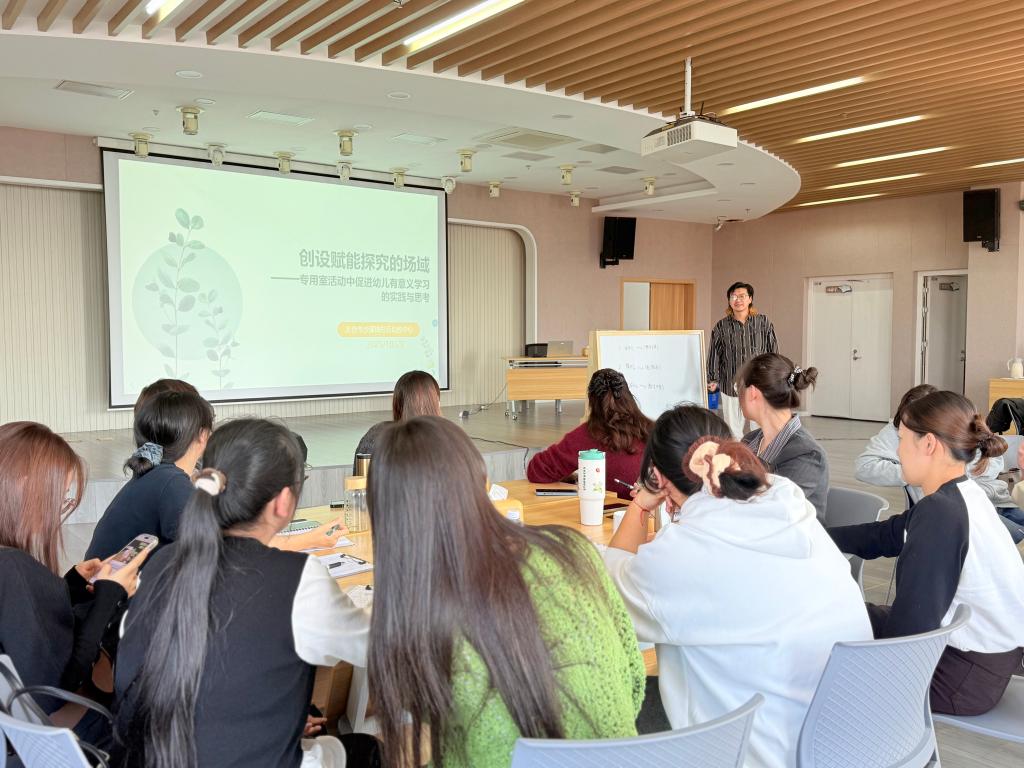 为深入贯彻《3-6 岁儿童学习与发展指南》精神,落实课程游戏化理念,践行“以幼儿为中心”的教育理念,10月29日,在太仓市沙溪镇白云幼教中心业务主任顾超的主持下,直塘幼儿园承办“创设赋能探究的场域——专用室活动中促进幼儿有意义学习”的活动,特邀观录童真幼教培训中心高级培训师、幼儿园自主游戏资深培训讲师张乐凯指导,本次活动由各园业务园长、青蓝共同体“青方”成员及各园空班教师参与。